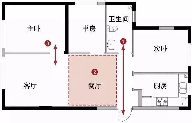 改變動線,就需要將空間的功能性進行改變。需要將入戶的動線改掉,用其他的空間來遮擋,這樣就從根本上改變了入戶門正對衛(wèi)生間門的情況。