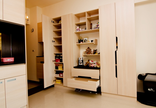 寬敞的玄關(guān),可以聚集家居的社交運(yùn)勢(shì)和人氣。人緣足了,愛情運(yùn)自然也得以提升。玄關(guān)內(nèi)外的格調(diào)要一致,在玄關(guān)附近安置綠色植物或者放置綠色的拖鞋架,可以讓家人更具人氣和魅力。